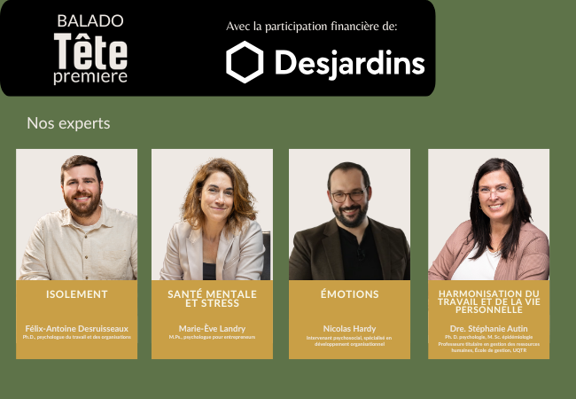 Développées dans le cadre du programme Tête Première, ces capsules audio donnent la parole à des spécialistes qui abordent une réalité encore peu discutée dans le monde entrepreneurial : la santé mentale et l’équilibre personnel des entrepreneurs. Conçues pour les propriétaires d’entreprise et les gestionnaires, elles proposent des réflexions accessibles et des pistes concrètes pour mieux comprendre certains défis liés à la pression, à la charge mentale et à l’isolement que peut parfois entraîner la gestion d’une entreprise.